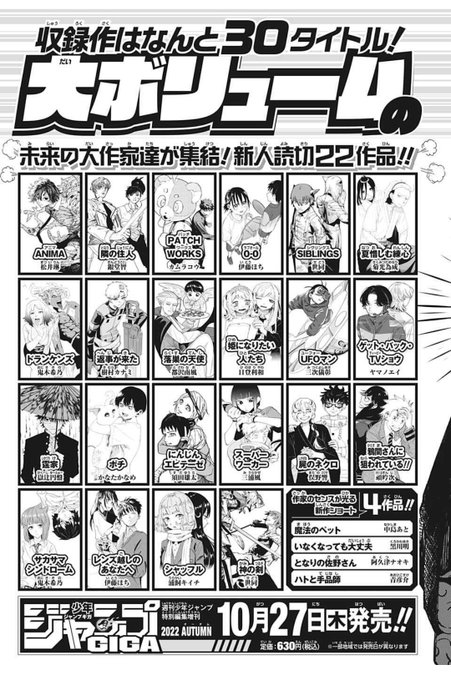 127 733 今日発売のジャンプGIGA2022AUTUMNに 読切漫画「ANIMA」を掲載させて頂いております!拙い部分も多くございますがお時間のある方は是非! 22/10/27 00:15