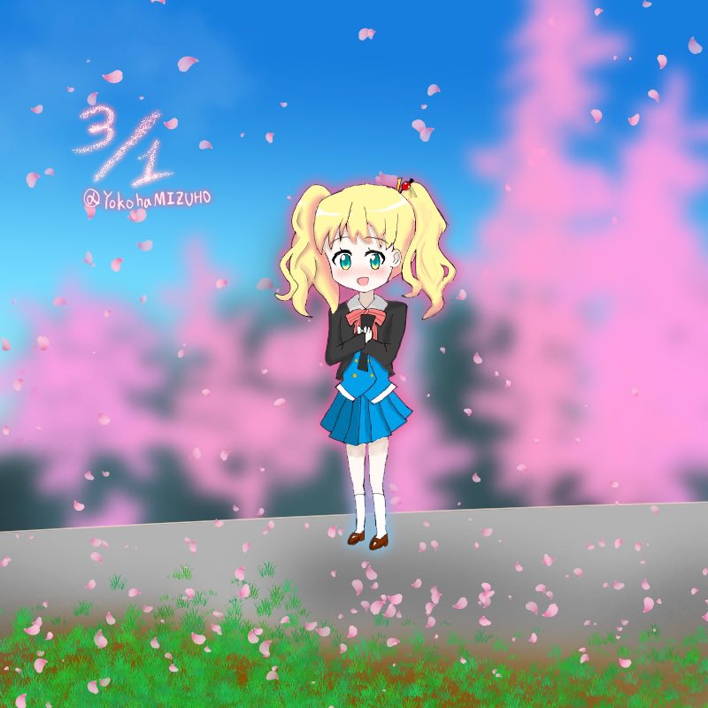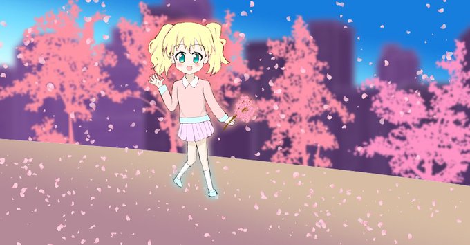 #今月描いた絵を晒そう 桜の咲く街 ギャラクシーココア ギンガムテキ