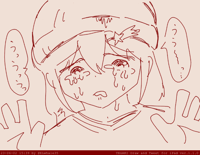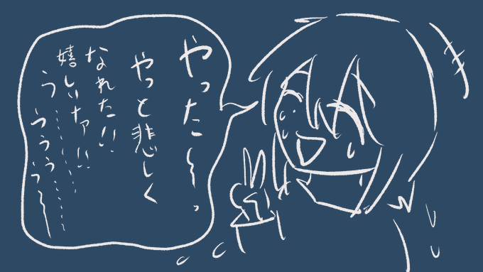 元々泣きっぱなしの子は、涙がきらきらの宝石みたいに目の下に固定されているので、さらに悲しいことがあったばあい、固着したなみだ石の上を、さらに新しくてきらきらで、せつないなみだが伝いおちていく。 #tegaki_dt