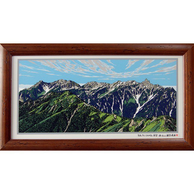 1 0 「K66-03 北アルプス盛夏」 登山者だけが味わえる山頂の大パノラマ、これぞ北アルプスという景観。流した汗も吹っ飛び、下界には戻りたくない、今の瞬間を止めたい、そんな声が聞こえてきます。#北アルプス #盛夏 #風景画 #新築祝い #山好き #登山 #贈り物 #開店祝い #信州 #旅好き 19/04/24 15:30
