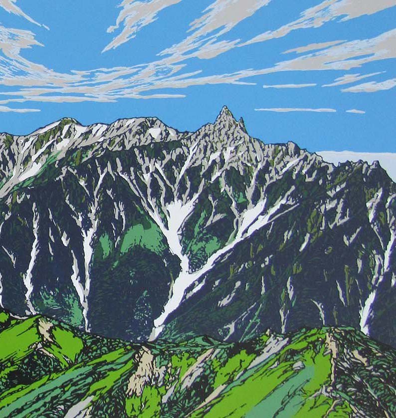「K66-03 北アルプス盛夏」 登山者だけが味わえる山頂の大パノラマ、これぞ北アルプスという景観。流した汗も吹っ飛び、下界には戻りたくない、今の瞬間を止めたい、そんな声が聞こえてきます。#北アルプス #盛夏 #風景画 #新築祝い #山好き #登山 #贈り物 #開店祝い #信州 #旅好き