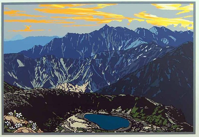 1 1 「M70-04 鷲羽岳より槍・穂高を望む」 眼下に鷲羽池、そして硫黄岳、その先には天に向かってそびえる槍ヶ岳と穂高連峰。早朝、今日の一日のルートに思いを馳せる時間です。#北アルプス #穂高 #風景画 #新築祝い #山好き #登山 #贈り物 #開店祝い #槍ヶ岳 #あさのたかを #鷲羽岳 19/05/10 10:19