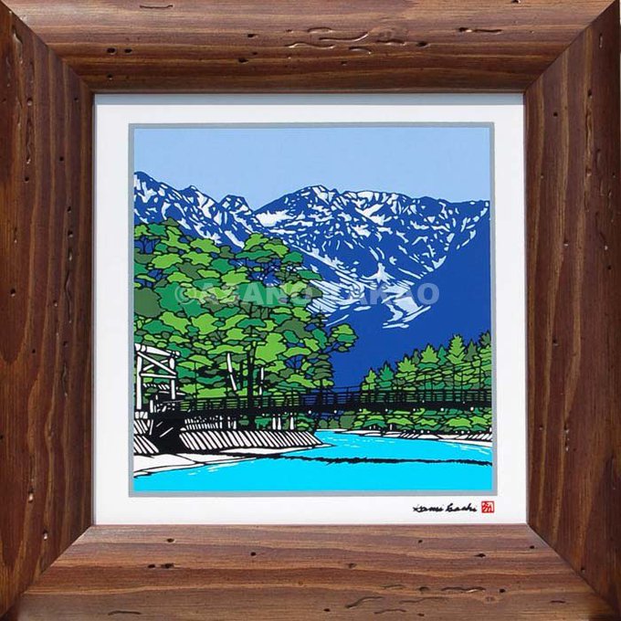 「J23-05 上高地・河童橋」 これぞ上高地という風景です。爽やかな空気、緑、水、穂高の尾根… 深呼吸をしたくなる景色をお部屋でお楽しみください。 #インテリア #壁掛け #上高地 #新築祝い #河童橋 #北アルプス #ギフト #旅行 #和風 #風景画 #リビング #玄関