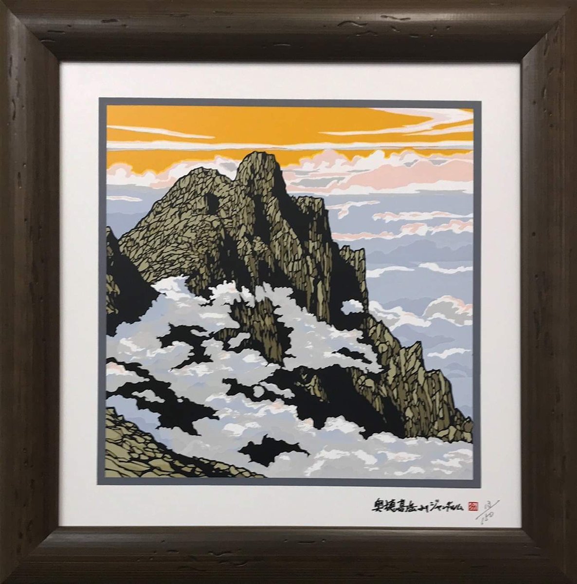 タイルアートのご紹介です。 「C33-03 ジャンダルム」 その日は焼岳や乗鞍岳は雲海の中。 でも流れる雲の間から奥穂高岳からジャンダルムが雄々しい姿を見せてくれました。 (額のサイズ H410×W410mm 絵のサイズ 約270×270mm) #ジャンダルム #インテリア #絵画 #風景画 #北アルプス #贈り物