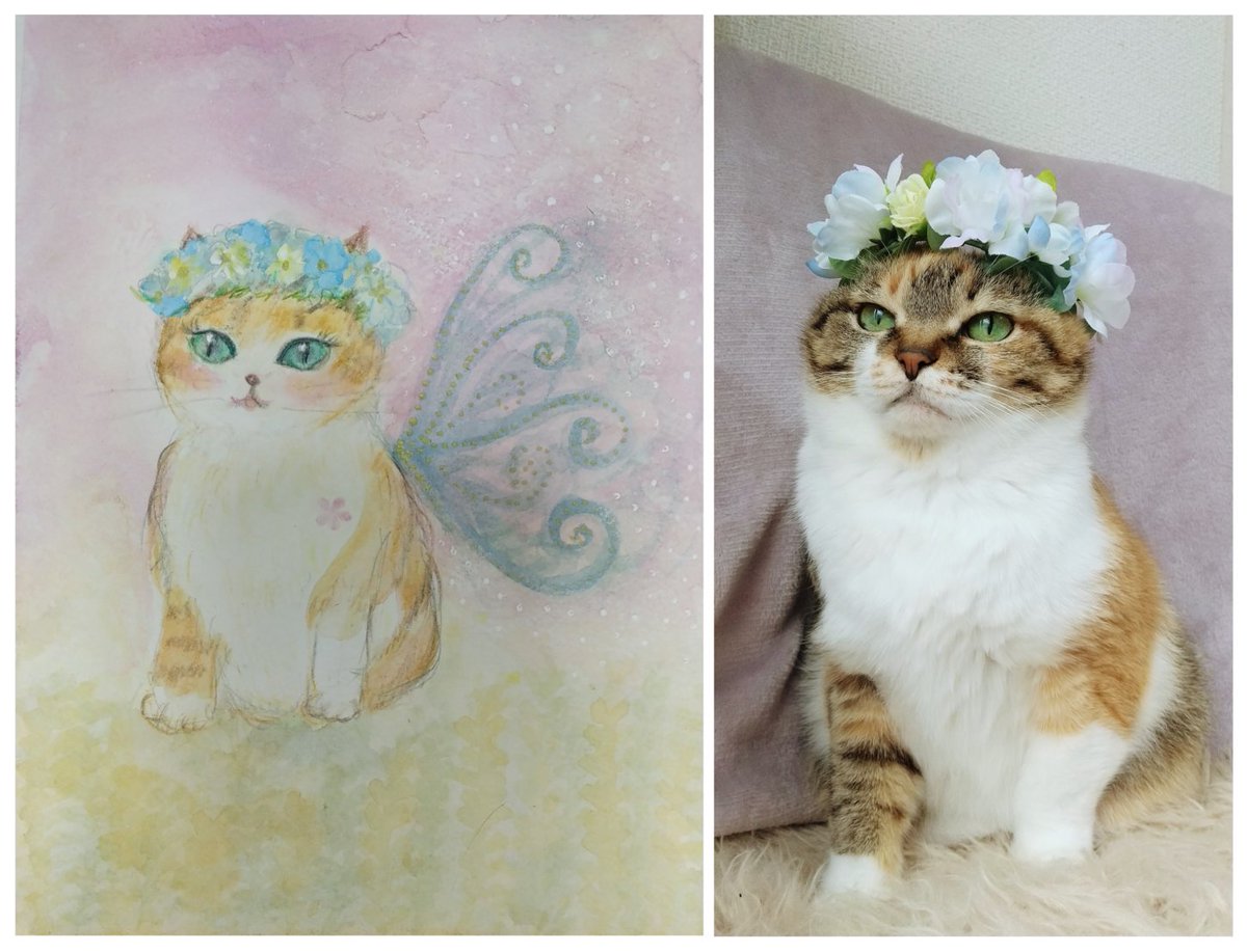 10 96 写真を元に描いてみましたシリーズです🎨 誰の所に行こうかな👑🌼✨ #猫 #イラスト #猫の絵 #catlover #癒し 23/04/02 09:39