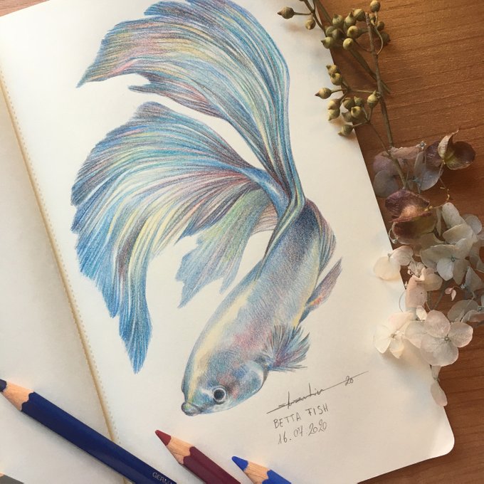 Un pececillo betta :) instagram.com/p/CCtrt6QDdMi/ #Betta #BettaFish #Illustration #TraditionalArt
