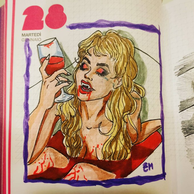1 6 𝖁𝖆𝖒𝖕𝖞𝖗𝖊 @chloelxpez #artwork #art #illustration #colored #markers #pencils #sketch #photoreference #semirealism #EM #disegno #dibujo #colorato #zeichnen #inktober #inktober2020 #blood #vampire #vampira #vampiregirl #sangue #halloween #bloodybath #horror 20/10/26 16:46