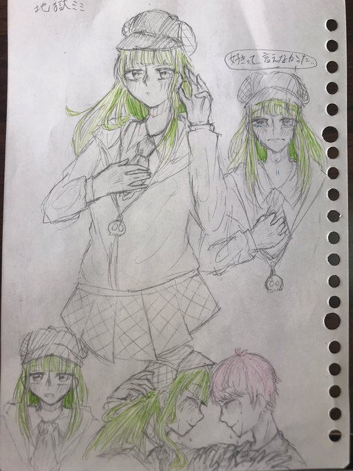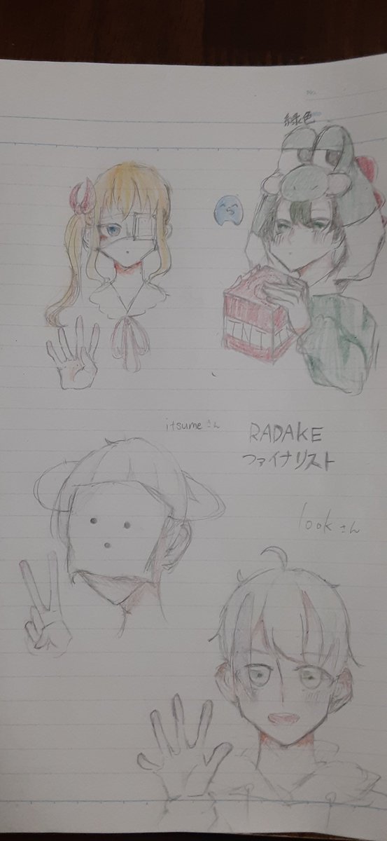 今日のオンライン授業で画角的に僕の手元映らないからこっそり描いてた絵。 しにちゃん久しぶりに描いた、やっぱり可愛いしにちゃんの方が描きやすい!あと、声優おめ! #しにがみあーと