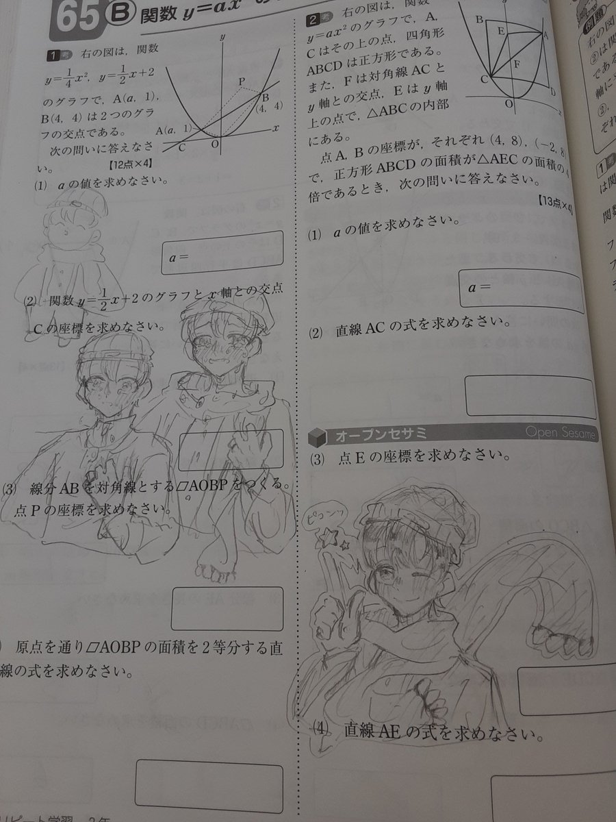 0 9 数学って何故か落書きが捗るんだよな〜。なんでだろっ☆ 布をギュッとしてる手がたまらん。 20/11/15 21:06