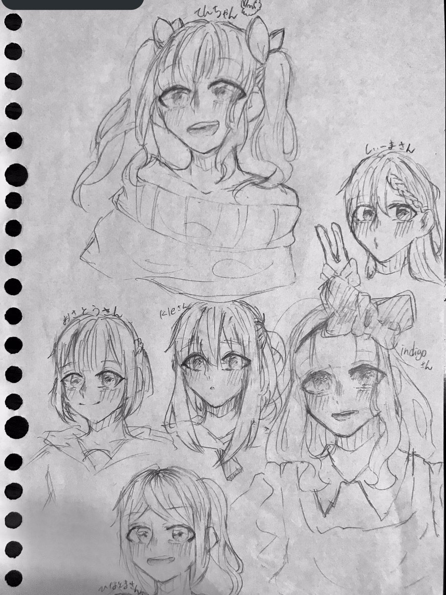 フォローさせてもらってる女性の方々(性別わかってる範囲の方)の代理を落書きった。みんなかわよくて良き…。 ※顔を安定させたい!!!;;