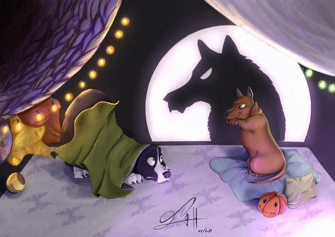 Ophy & Woody Bad dog For this Inktober prompt I wanted to create a scene about Woody and Ophelia spending the Halloween night telling horror stories. @inktober @procreate #halloween #inktober #cartoon #characterdesign #art #animals #dogs #cartoon #procreate #deviantart