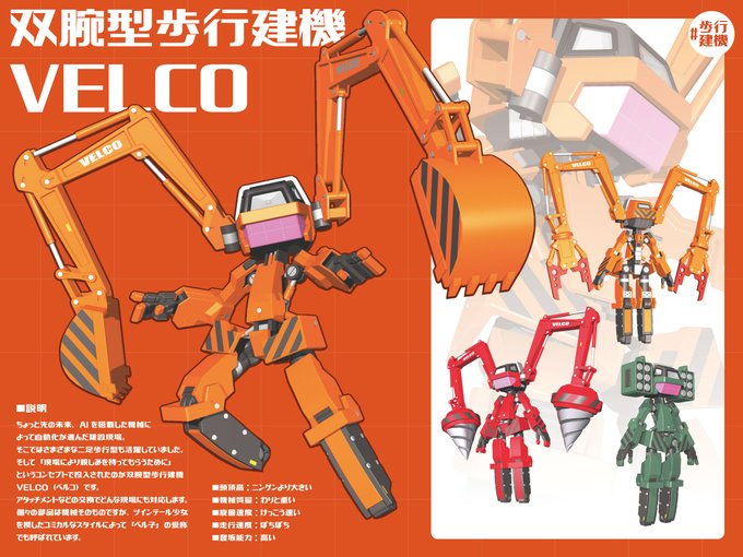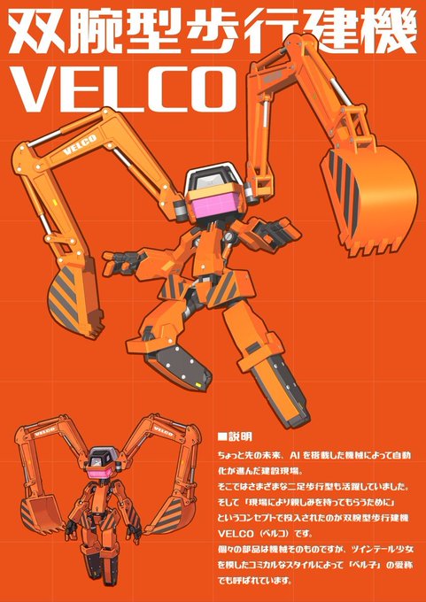 28 67 「双腕型歩行建機VELCO」 デフォルメイメージ #歩行建機 21/07/24 23:31