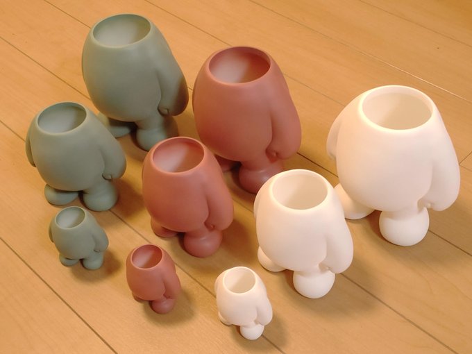 22 44 これがポッコの3サイズ×3カラーと箱。サイズ違いでも同じ箱ですね。 #二足歩行型植木鉢 22/03/06 20:58