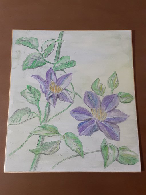 こんな感じに。。 #色鉛筆画 #クレマチス