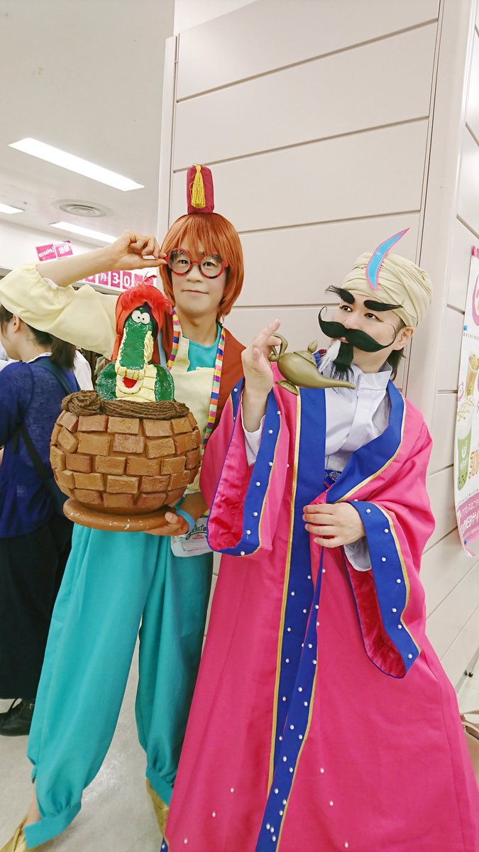 6.10 アコスタ! キャストからマジックランプシアターへご案内。 ベキート様もご一緒です。 アシーム君は隠した宝箱の鍵を探していました。 キリト君も凛ちゃんも無事 マジックランプシアターに着いたようです(^-^) #アコスタ #ディズニー #マジックランプシアター