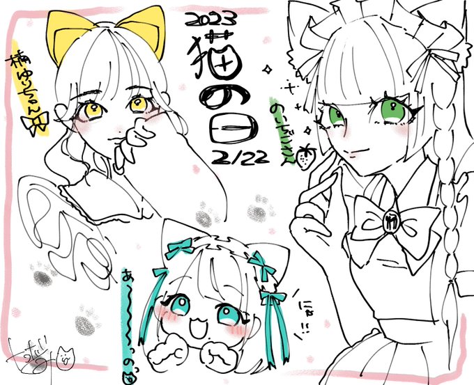 🐈⬛🐈🐱 #猫の日 #イラスト #アイドル #yuri_imew #楠ゆり #noinyororom #のちいご #のいちご通信 #aino_dspm #常盤あい乃 #あーのあーと