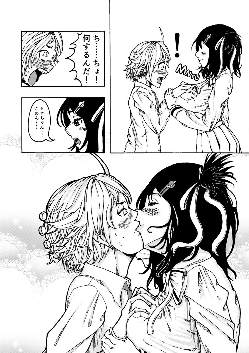ショートマンガ(4) 『キス』 これは確か……去年の夏に描いたような気が……します。 絵柄を変えて練習していた中で描いてみた1ページマンガの1つです。 #イラスト #絵描きさんと繋がりたい #アナログ #ヒロイン #漫画家志望さんと繋がりたい #マンガ #漫画が読めるハッシュタグ