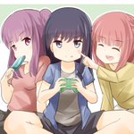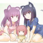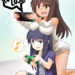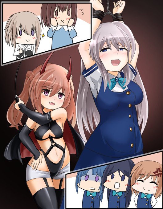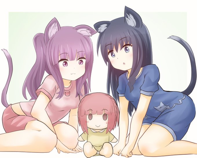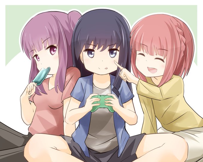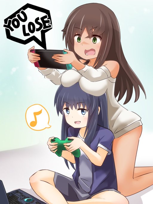 ゲームに夢中むっちゃんを観察中 綾香「すごい集中力よね。話しかけても反応しないし」 愛花「ほっぺ、ぷにぷにしてみよー」 睦海「…むっ、やめれ」 綾香&愛花「しゃべった」 #アリスギアお絵かき