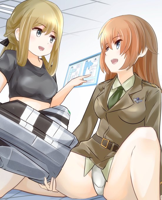 リタとシャーリーのストライカー談義 リタ「レシプロってのがギアとはまた違うロマンだよね」 シャーリー「……っ!アンタ、話の分かるカールスラントだな!」 リタ「でも、これにジェットとか積んだら……」 シャーリー「ほう!ほう……!!」 #アリスギアお絵かき #アリスギアウィッチーズコラボ