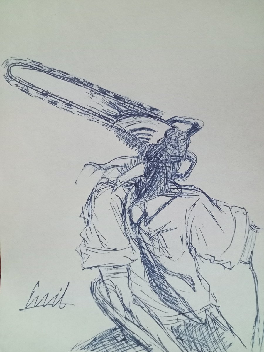 用事があって学校に行ったら、帰りの汽車まで時間があったのでボールペンでらくがきしました✍️ 大好きなチェンソーマンです。 #絵描きさんと繋がりたい #絵描きさんフォロバ100 #イラスト #チェンソーマン