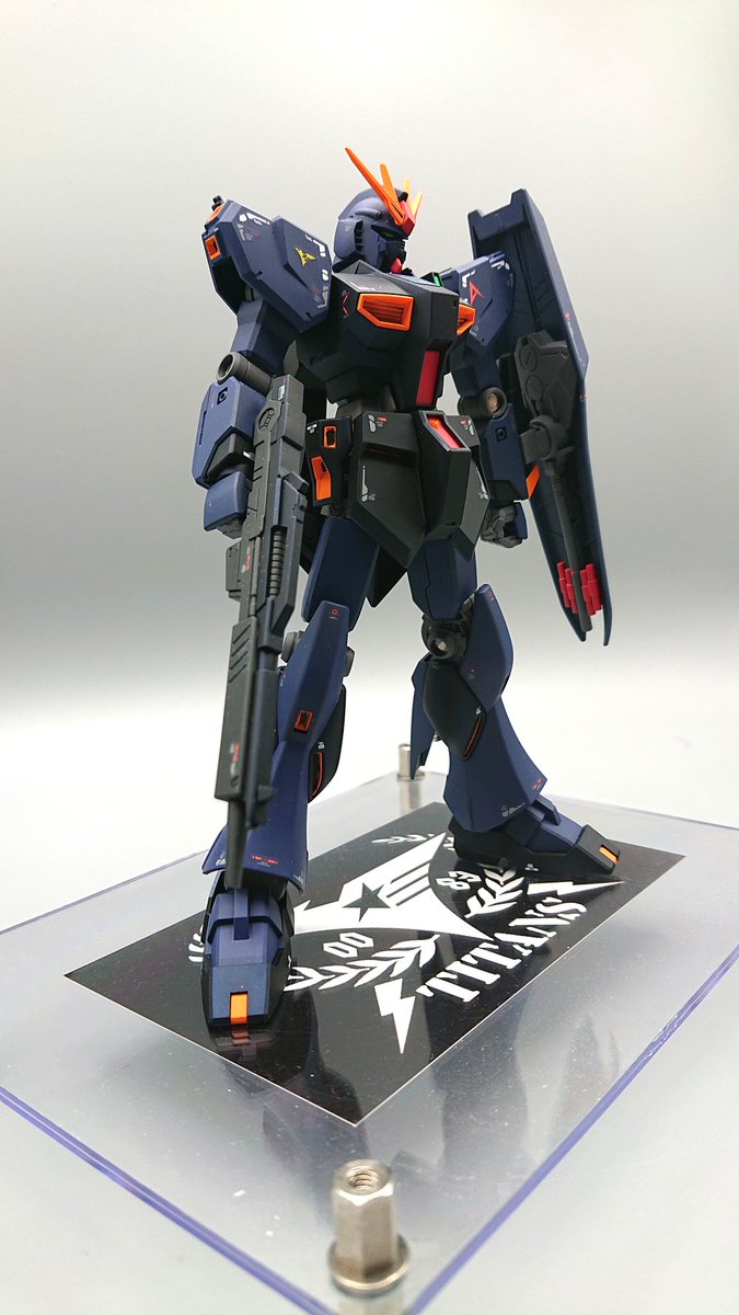 かねてよりちょこちょこ作っていたEG νガンダム完成。今回はシンプルに作って見ました。 #ガンプラ #ティターンズ #ガンプラはどんな自由な発想で作ってもいいんだ #ガンプラの画像を貼るとRTされると聞いて #EG #νガンダム