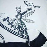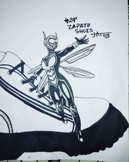 Día 29° #Zapato / #Shoes 👟 Wasp puede reducir su tamaño a voluntad, puede llegar a ser aún más pequeña que un zapato, incluso mucho más pequeña. #InkTubre #AmoDibujar #DibujosEwito #inktober2020