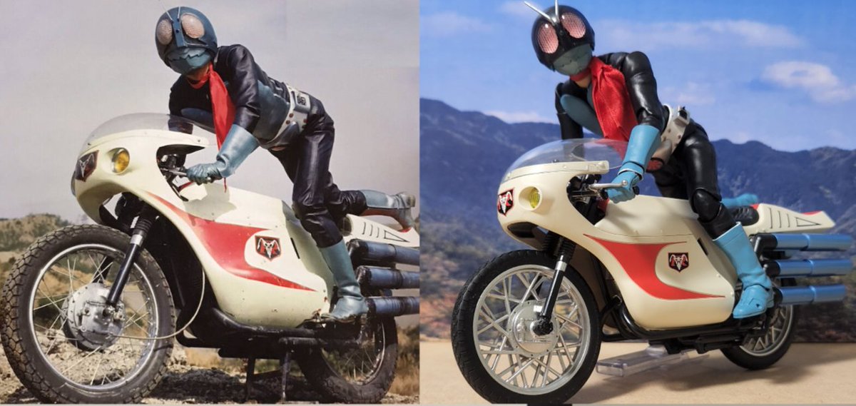 真骨の旧1号を ネットで拾ったサイクロンと一緒に写ってる当時の写真を中心に再現してみた やはり、微妙にサイクロン号は小さいが、はったりはきく範囲と個人的には思う #フィギュアーツ写真部 #オモ写 #魂ネイション2022
