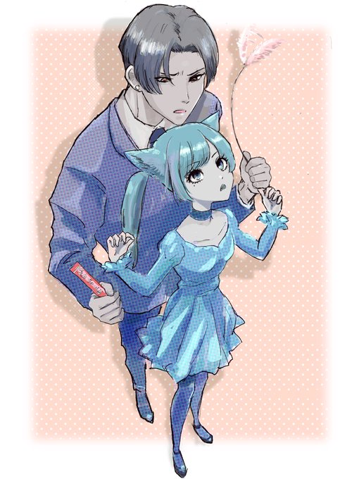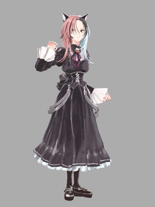 1 5 イラストのお題を妹から指定してもらい、それに合わせて描いてみました お題 猫 ピンク、水色、グレー クールな表情 ゴシックな雰囲気の衣装 22/08/13 10:59