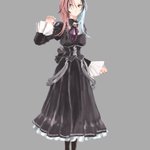 イラストのお題を妹から指定してもらい、それに合わせて描いてみました お題 猫 ピンク、水色、グレー クールな表情 ゴシックな雰囲気の衣装