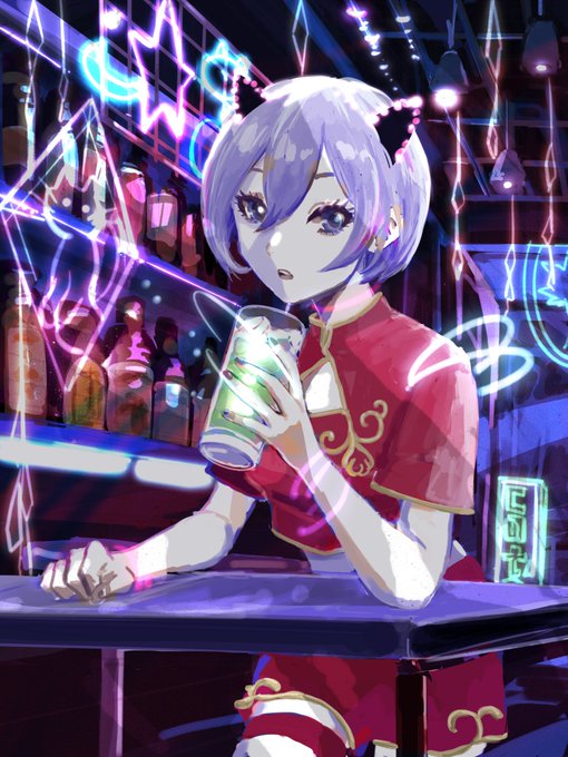 1 7 ネオンなバーの女の子 #イラスト #女の子イラスト 22/09/02 20:18