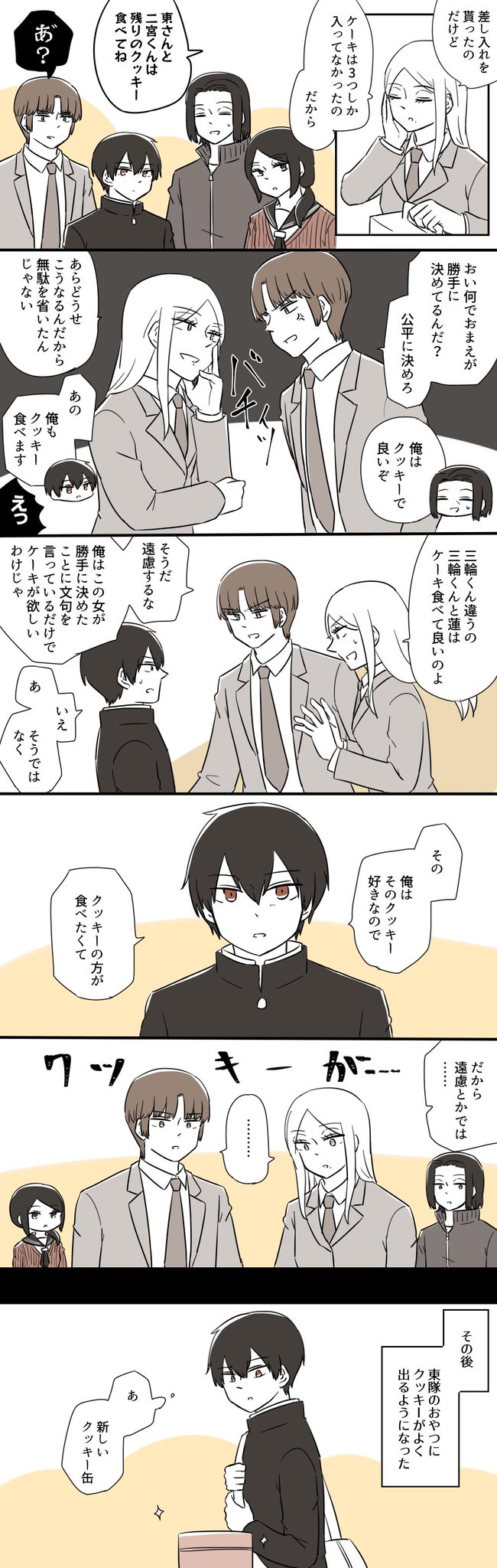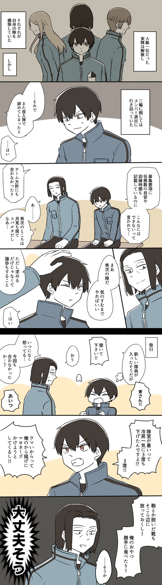 158 1373 結局月2ぐらいでやってる ※三輪隊 結成直後、まだ仲良くない頃の話です…… 23/07/27 20:46