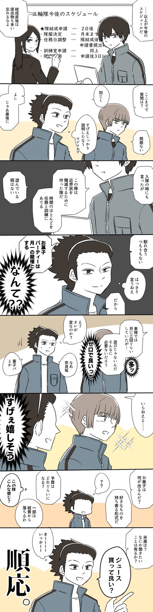 月見「似たような話を昔に見たわね」 ※三輪隊 米屋家から救世主のように扱われてる三輪さん大好き