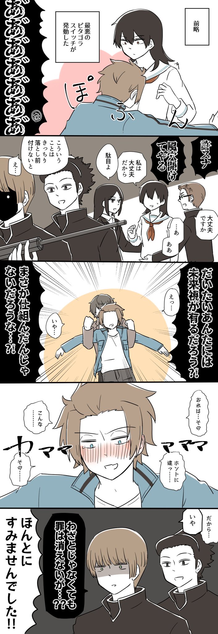 37 431 誠心誠意謝った ※迅三輪(♀) ※女体化 リクボより「迅三輪(♀)ラッキースケベ」です!! 赤面を久しぶりに描けて私は満足です。ありがとうございました! 23/01/14 19:18