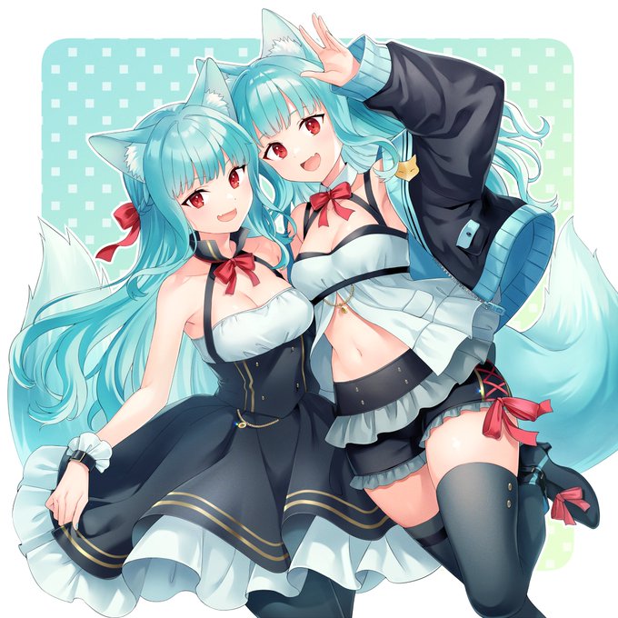 Skeb納品しました🦊🦊 どちらの衣装も可愛かったので分身してきてもらいました リクエストありがとうございました!