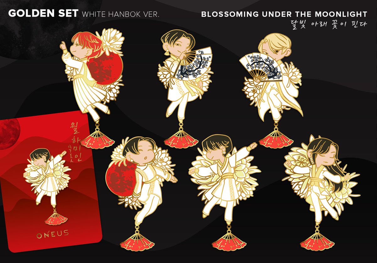 [THREAD] 🎴Blossoming under the moonlight🎴 More detailed pictures of my ONEUS' project. For today, the first set (of two): White Hanbok Version (or Golden set), inspired by LUNA's stage from their 071121 concert. #ONEUS #ONEUSfanart #원어스 Link below⬇️