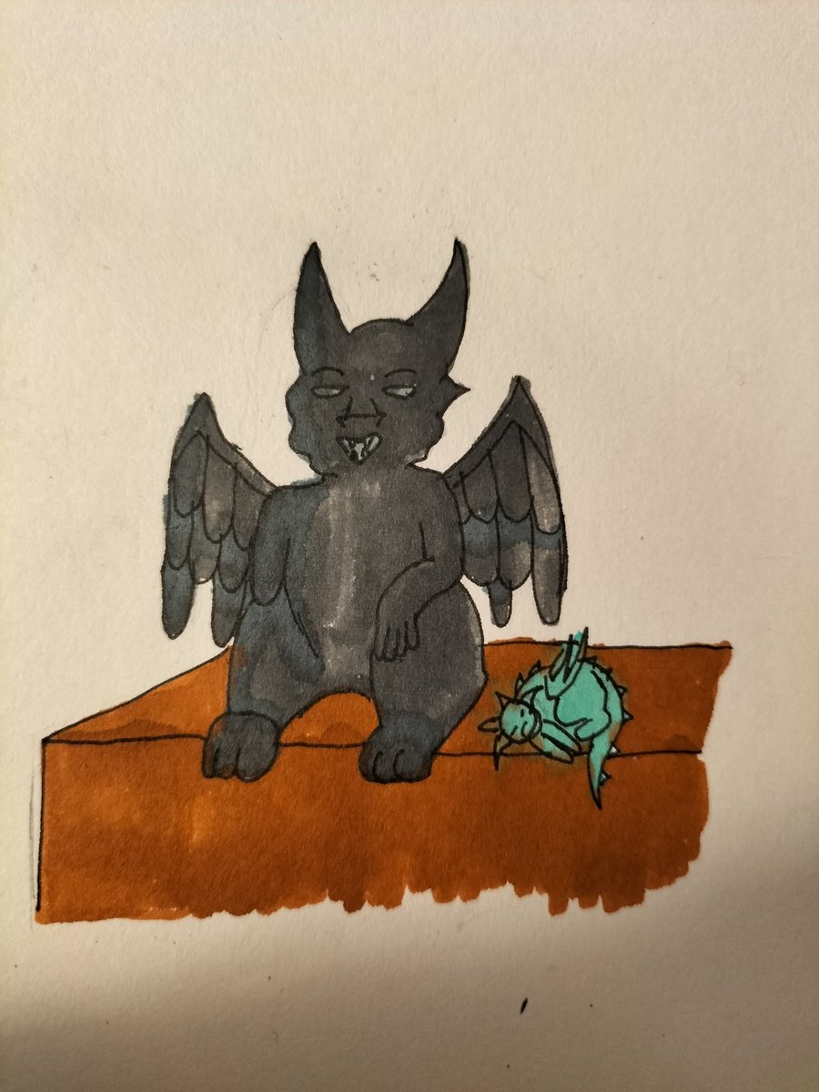 It's October so you know what that means. Time to crack open a new sketchbook for Inktober again. #artistontwitter #art #inktober #inktober2022 #illustration #gargoyle