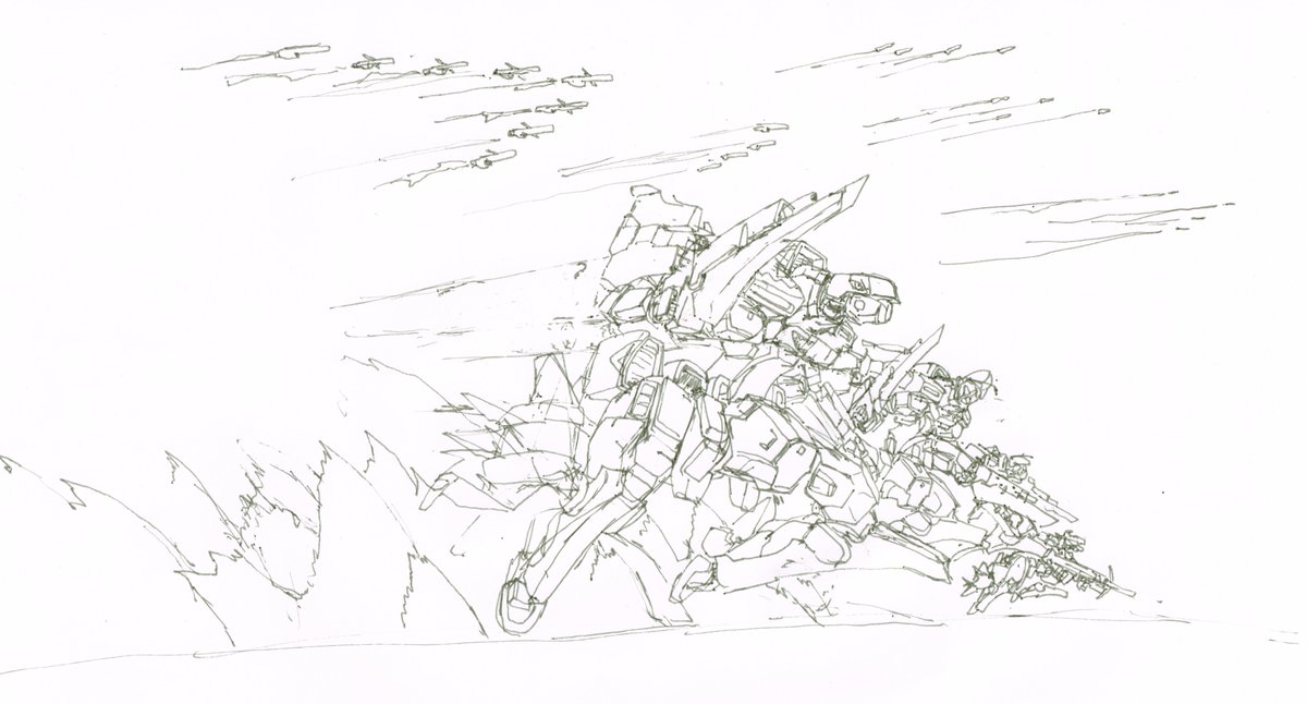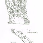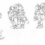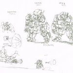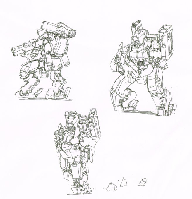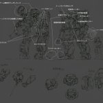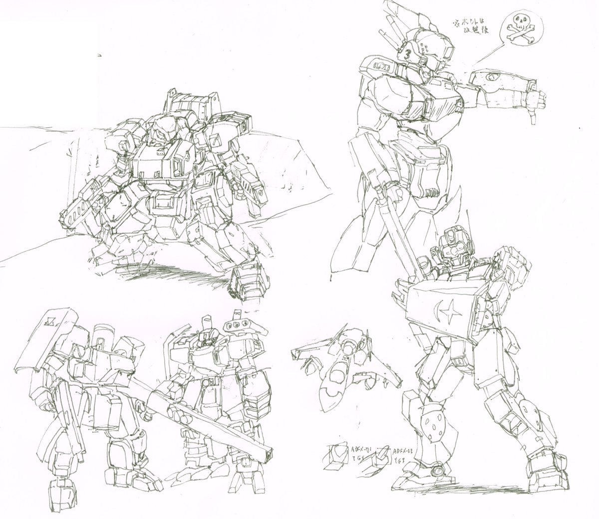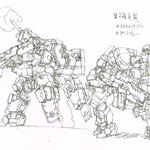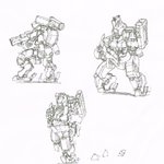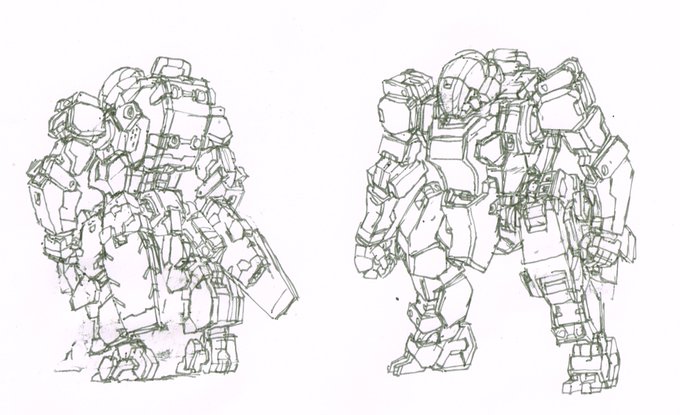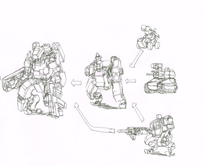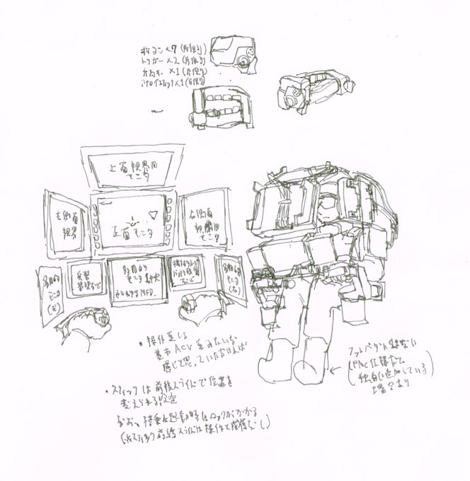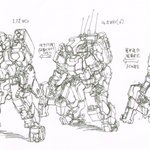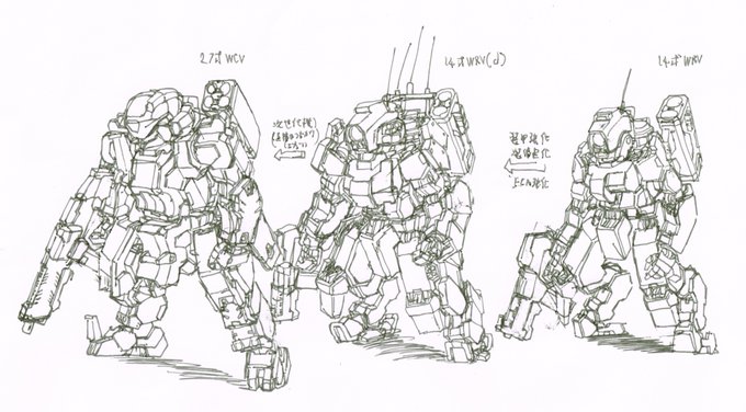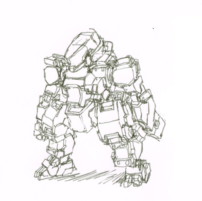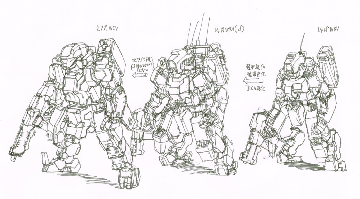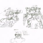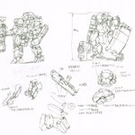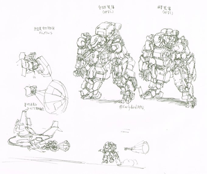 らくがき。 4m級で前開き&後ろ開きの2方向。 地形適性は宇B・空なし・陸A・水上C・水中Dくらいのイメージ。