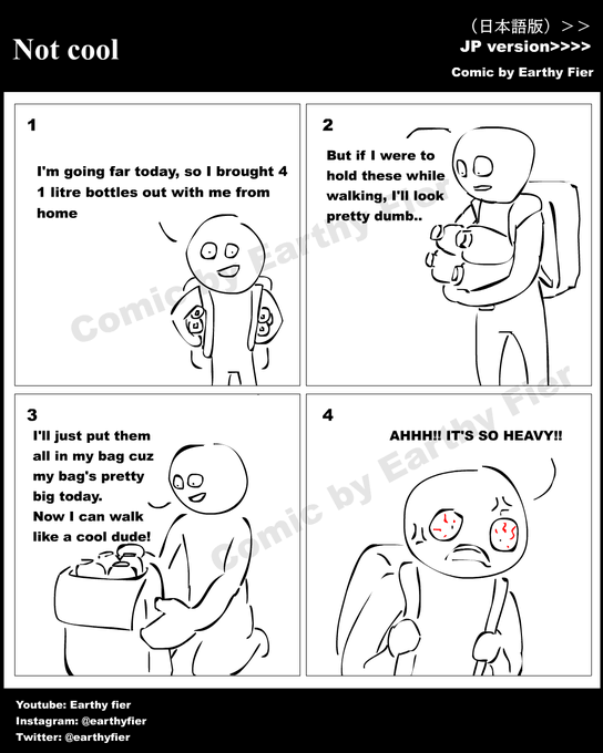 instagram.com/earthyfier/ ^See more 日本語付きの漫画 A bilingual comic EP 356 Not cool かっこよくない #イラスト #絵描きさんと繋がりたい #みんなで楽しむTwitter展覧会 #漫画が読めるハッシュタグ #4コマ漫画 #comic #一次コミ #Twitter交流会会場 #4コマR $picrt #落書向上委員会
