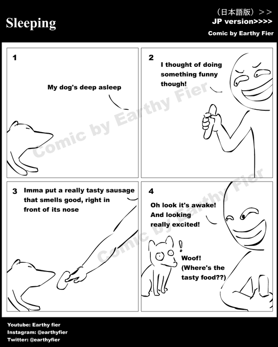 instagram.com/earthyfier/ ^See more 日本語付きの漫画 A bilingual comic EP 349 Sleeping 寝てる #イラスト #絵描きさんと繋がりたい #みんなで楽しむTwitter展覧会 #漫画が読めるハッシュタグ #4コマ漫画 #comic #一次コミ #Twitter交流会会場 #4コマR $picrt #落書向上委員会