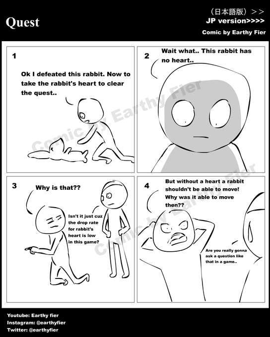 instagram.com/earthyfier/ ^See more 日本語付きの漫画 A bilingual comic EP 350 Quest クエスト #イラスト #絵描きさんと繋がりたい #みんなで楽しむTwitter展覧会 #漫画が読めるハッシュタグ #4コマ漫画 #comic #一次コミ #Twitter交流会会場 #4コマR $picrt #落書向上委員会