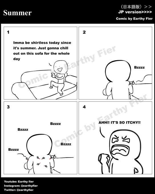 instagram.com/earthyfier/ ^See more 日本語付きの漫画 A bilingual comic EP 369 Summer 夏 #イラスト #絵描きさんと繋がりたい #みんなで楽しむTwitter展覧会 #漫画が読めるハッシュタグ #4コマ漫画 #comic #一次コミ #Twitter交流会会場 #4コマR $picrt #落書向上委員会