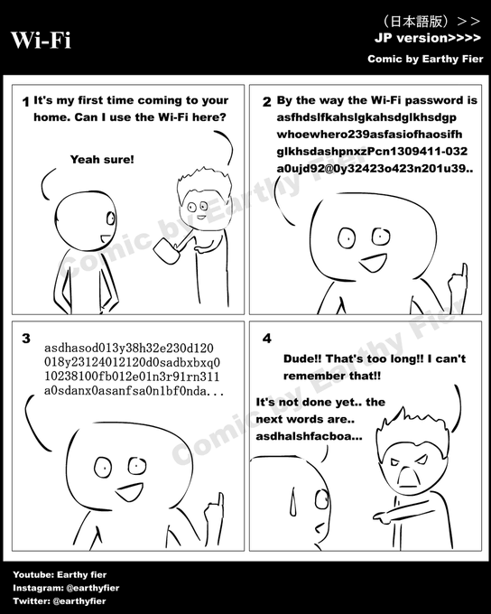 instagram.com/earthyfier/ ^See more 日本語付きの漫画 A bilingual comic EP 370 Wi-Fi ワイファイ #イラスト #絵描きさんと繋がりたい #みんなで楽しむTwitter展覧会 #漫画が読めるハッシュタグ #4コマ漫画 #comic #一次コミ #Twitter交流会会場 #4コマR $picrt #落書向上委員会