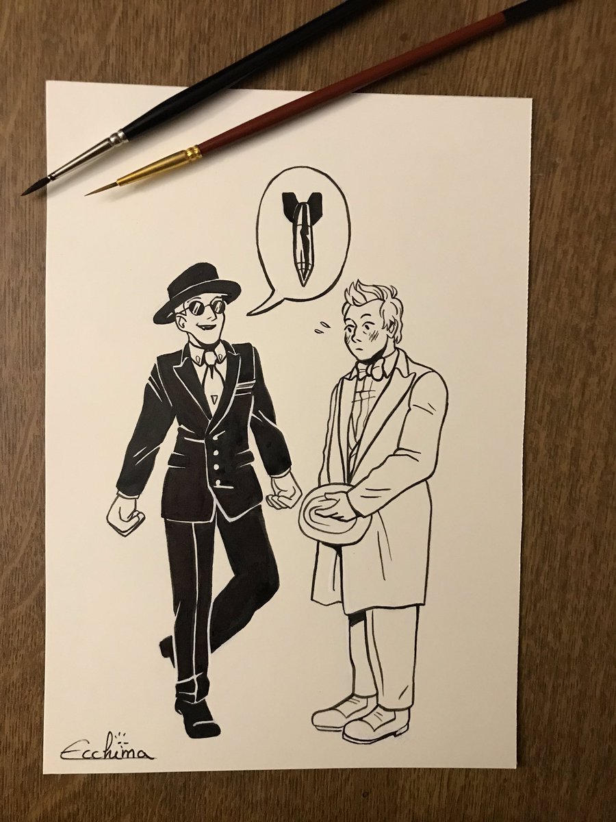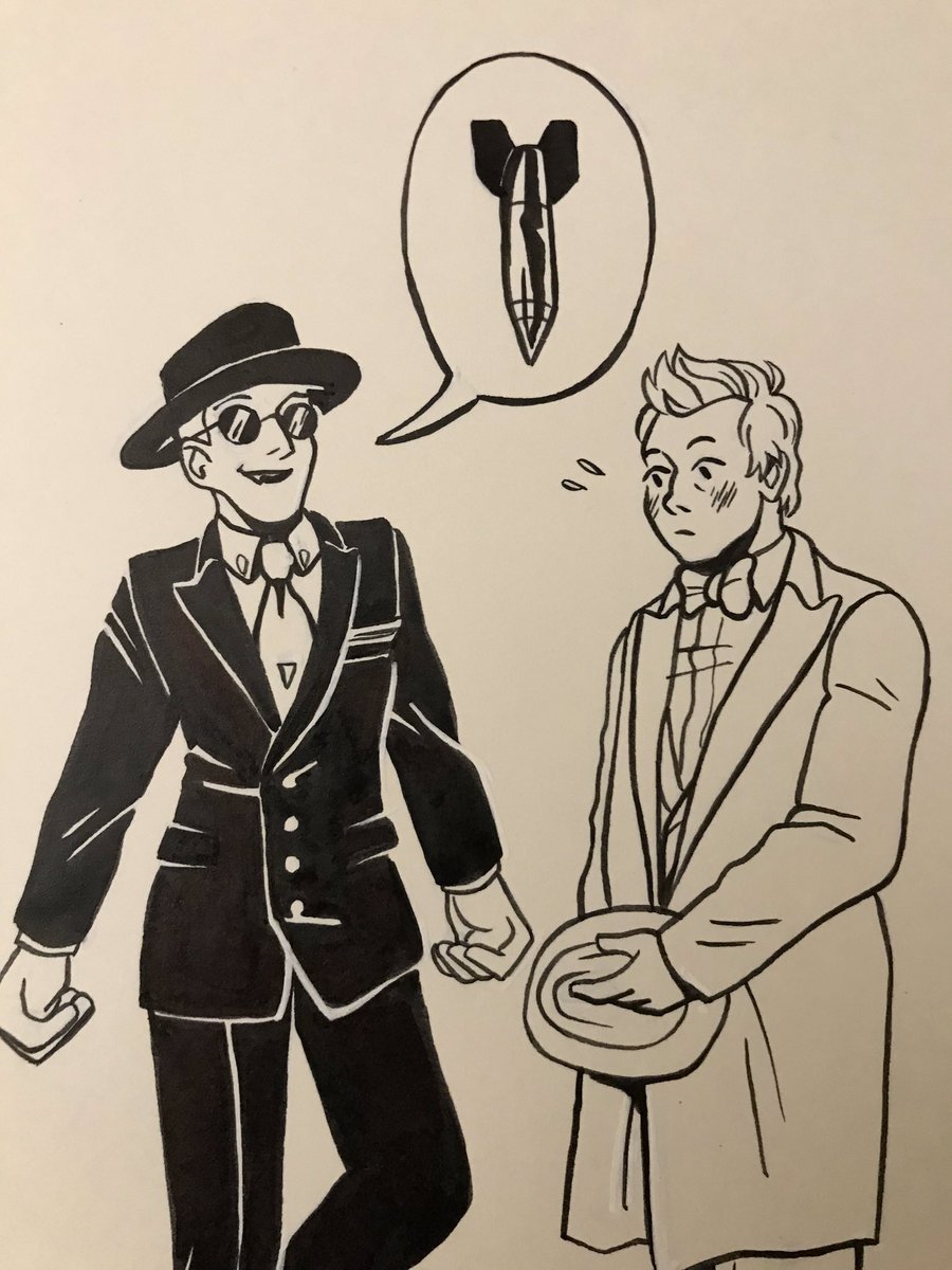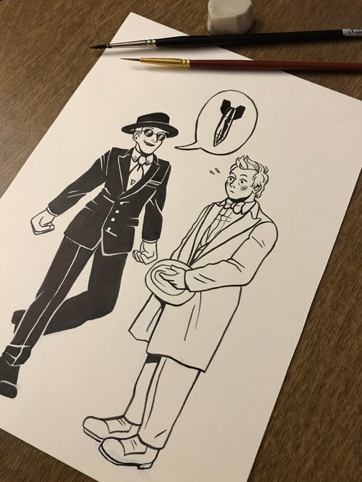 Not the best of pictures for #Inktober Day 4: Edwardian Era (1890-1914) 😅 #GoodOmens #GoodOmensFanArt #aziraphale #crowley #ineffablehusbands #inktober2019