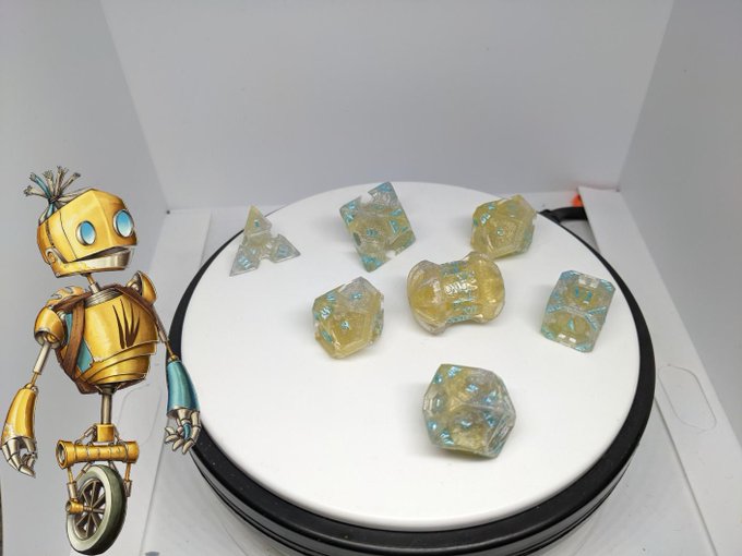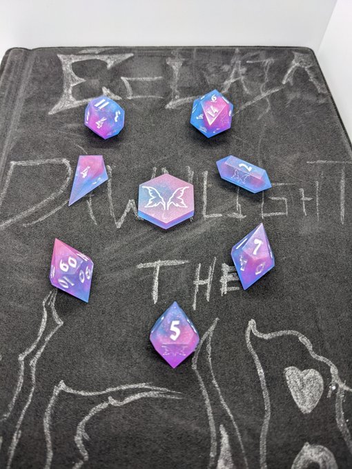 "giggles of a full moon" here's a set designed after the cutest wolf there is always fun dropping into your stream @_Silvervale_ <3 #DoodleVale#dice#handmadedice