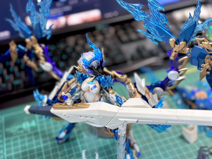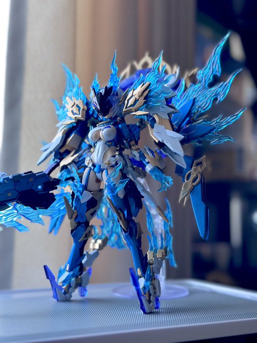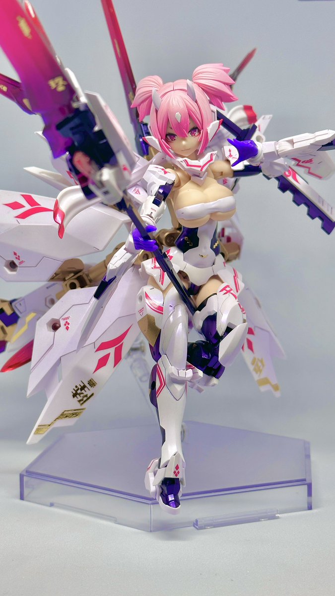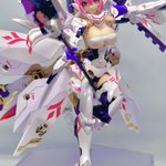 武装状態 実はスカルマサカーはパーツの切り離しすらしてないんです。 ルミティアのアルナイルロッドもそうだけど武器だけ塗装してない状態が続いてる… 肩アーマーは白銀、マントは白から青のグラデに変更。 (耳角が半挿しなのは抜けなくなるの防止のため) #メガミデバイス #エクスキューショナー