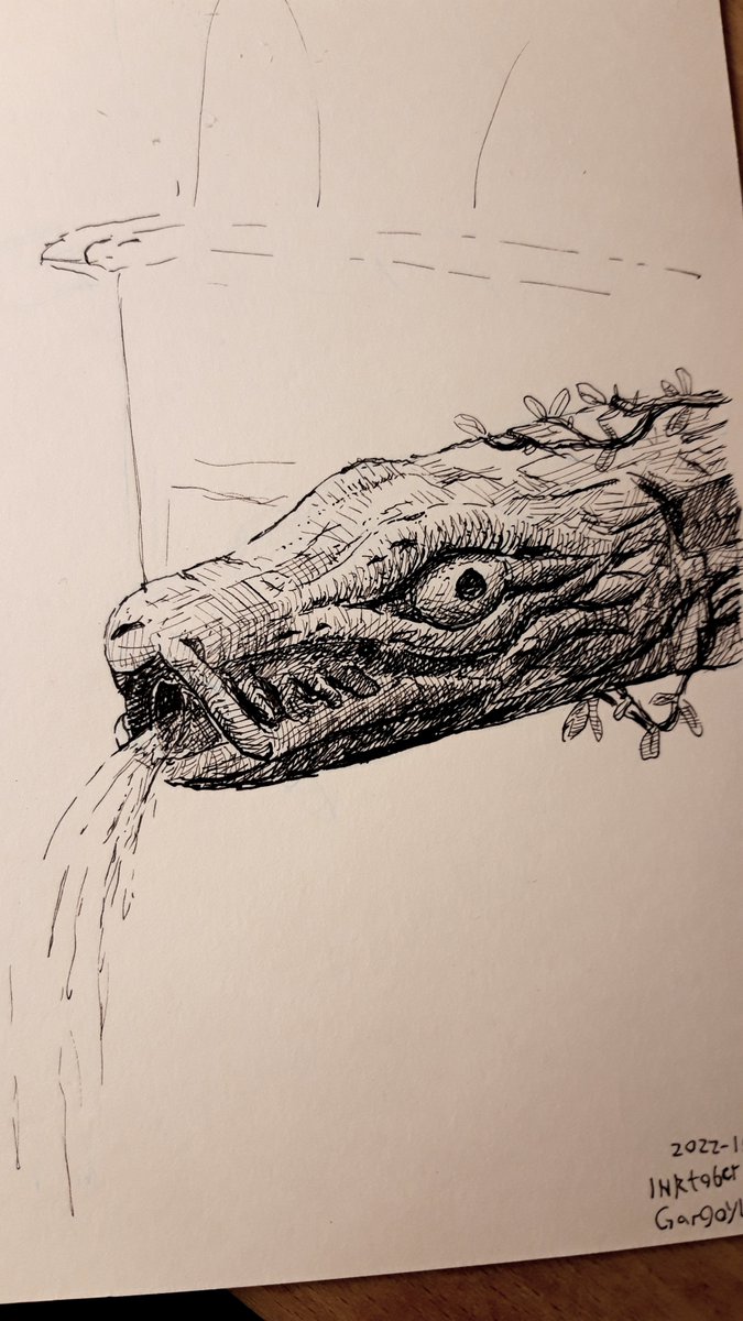 First #inktober2022 drawing. Well first #Inktober drawing ever! Thought I'd share, though feels a bit silly to do so with no real following, but got to start somewhere I guess! #art #artistsontwitter #PenandInk #Dippen #gargoyle