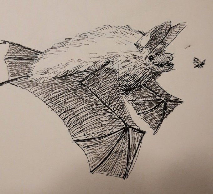 Trying my hand at a bat. Not overly happy with it. Fun to try to draw something fluffy though. #inktober #inktober2022 #inktober2022bat #pendrawing #penandink #penandinkdrawing
