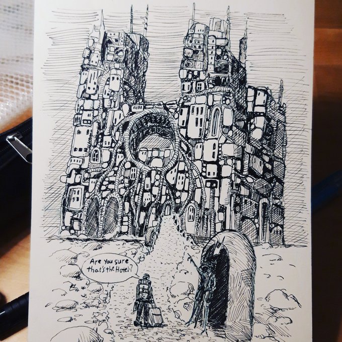 Seventh entry. Started out as a sort of homage to that beksinski building but kind of evolved past that. #inktober #inktober2022trip #penandinkdrawing #pendrawing #dippen #drawing @inktober