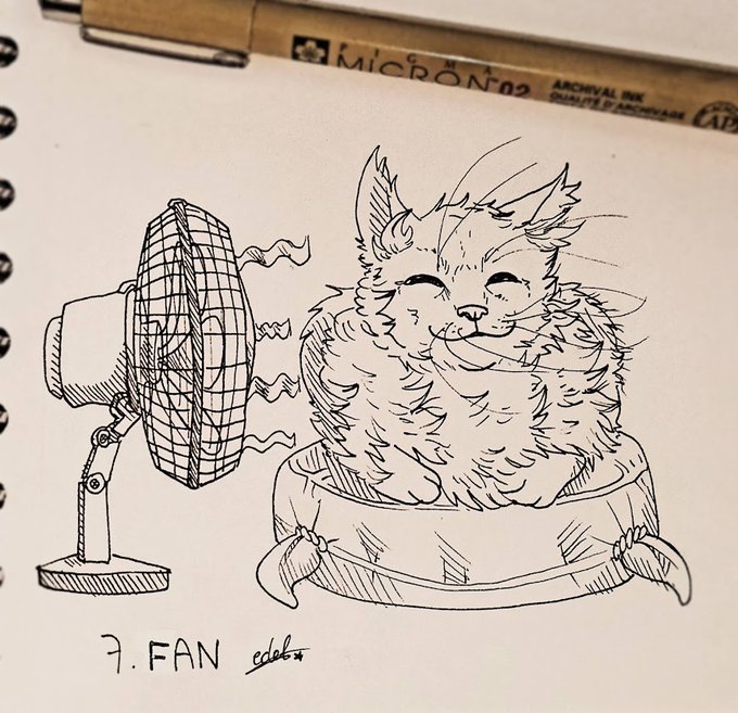 J 7 : Fan #inktober2021 #Inktober #cat #ink #Fan #inktober2021day7