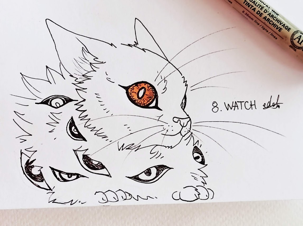Day 8 : Watch #inktober2021 #Inktober #cat #ink #Watch #inktober2021day8